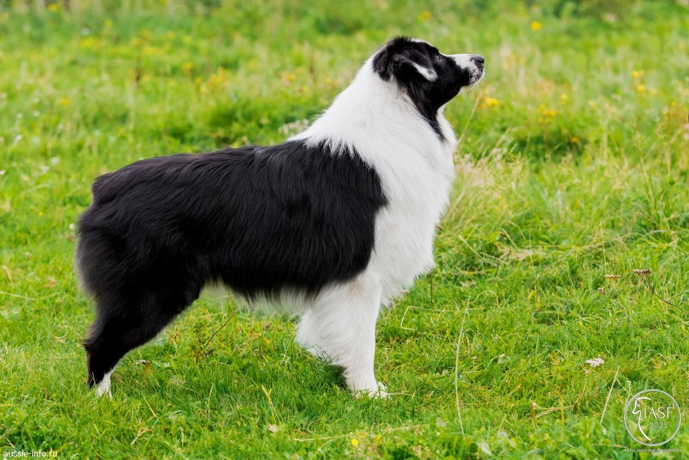 Некрупный, костистый, компактный кобель красивого формата, взявший лучшее от своих родителей. Очень сбалансированный, встроенный баланс возбуждения/торможения, без перевозбуда. Честный, старательный и ответственный. Отличная шерсть, красивые движения, хорошо пигментирован.